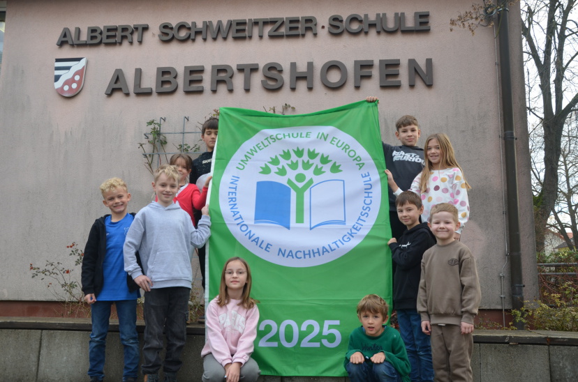 Zum ersten Mal wurde die Albert-Schweitzer-Grundschule für das Schuljahr 2023-24 mit dem Titel „Umweltschule in Europa/Internationale Nachhaltigkeitsschule“ ausgezeichnet. Bei der Schulweihnachtsfeier wurde die dazugehörige Urkunde und Fahne erstmals der Schulfamilie präsentiert.