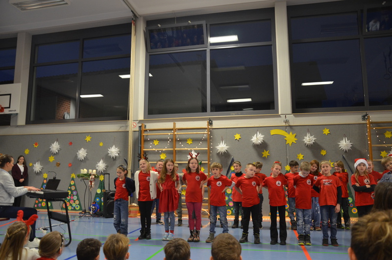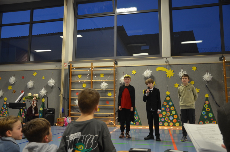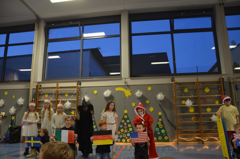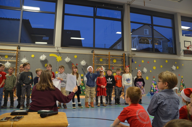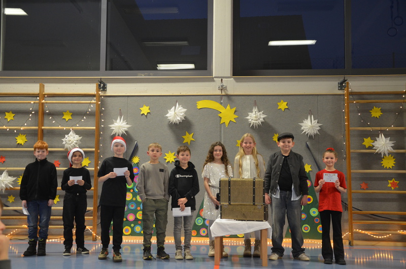 In der vergangenen Woche fand an unserer Grundschule eine wunderschöne Weihnachtsfeier statt, bei der alle Klassen mit viel Engagement und Freude ein abwechslungsreiches Programm präsentierten. Der Chor unter der Leitung von Frau Michelfeit eröffnete die Weihnachtsfeier in der Turnhallte stimmungsvoll mit dem Lied „Singen wir im Schein der Kerzen“. Die Klasse 4a von Frau Schirm nahm die Zuschauer mit auf eine spannende Reise und stellte vor, wie Weihnachten in verschiedenen Ländern gefeiert wird.