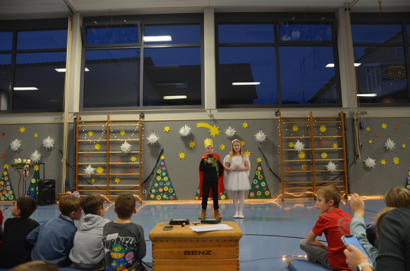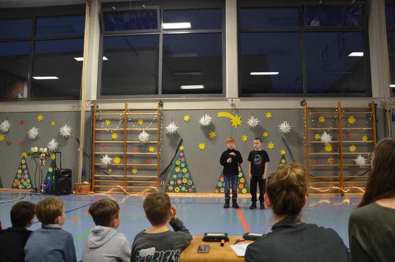 Das fröhliche Lied „Was machen wir im Winter, wenn es schneit“ unter der Leitung von Frau Keupp und Frau Handwerker präsentierte die 1.Klasse und stimmte das Publikum musikalisch auf die Winterzeit ein. Mit viel Schwung und Rhythmus folgte Frau Obermeiers 3. Klasse einem mitreißenden Hiphoptanz zu „Jingle Bells“, der für großen Applaus sorgte.Auch die Ehrung der fleißigsten Leser war wie immer ein fester Bestandteil der Feier. Das übernahm dieses Mal der Schülerrat mit Hilfe einer freiwilligen Los-Fee und einem Los-Zauberer, sowie Herrn Schafferhans.