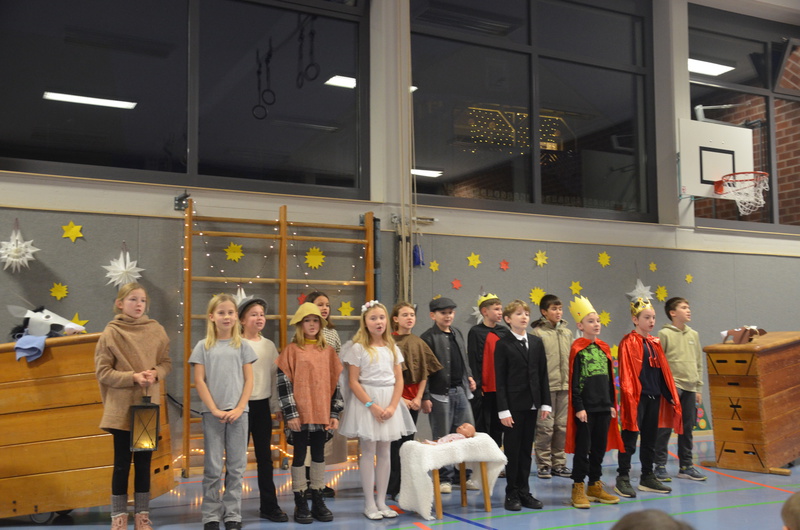 Anschließend begeisterte die 2. Klasse von Frau Feld mit dem „Gefühle-Blues“. Dabei zeigten die Kinder nicht nur musikalisches Talent, sondern stellten auch ihr Wissen zur Giraffensprache und die „Warme Dusche“ vor und machten deutlich, wie wichtig ein wertschätzender und achtsamer Umgang miteinander ist. Danach führte die Klasse 4b das Theaterstück „The Farmer’s Christmas“ auf und zeigte dabei eindrucksvoll ihr schauspielerisches Können, angeleitet von Herrn Schafferhans alles auf Englisch natürlich.
