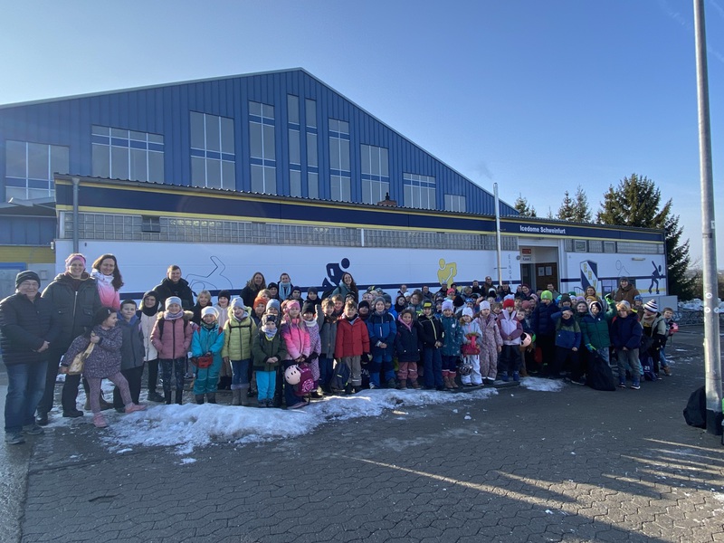 Kurz bevor der Frühling endgültig Einzug hielt, gingen wir mit der ganzen Schule noch einmal auf die Eisbahn in Schweinfurt. Nachdem wir in der Vorwoche mit den Kindern in der Turnhalle grundlegende Fertigkeiten zur Laufrichtung oder zum richtigen Hinfallen geübt hatten, stand einem schönen und sportlichen Vormittag nichts mehr im Wege. Vor den reibungslosen Ablauf sorgte Schulleiterstellvertreterin Katharina Böll. Neben den Lehrkräften und Praktikanten waren auch viele Eltern zur Unterstützung mit dabei, so dass die Kinder sehr gut betreut waren. Herzlichen Dank dafür!