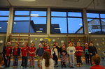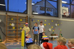 Nach zwei Durchgängen versammelte sich die Schulfamilie noch einmal in der Turnhalle. Schulleiter Harald Schafferhans bedankte sich bei den engagierten Eltern, von denen einige bereits schon seit mehreren Jahren als Vorleser mitwirken. Besonders gefreut hat es alle, dass auch dieses Jahr wieder neue Eltern dabei waren. Als Anerkennung gab es eine kleine "Danke-Tüte" gefüllt mit einigen Kleinigkeiten zur Einstimmung in die Adventszeit.