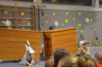 Ganz im Zeichen der Musik stand die Jahreszeitenfeier vor den Pfingstferien. Zum zweiten Mal nahmen wir am Aktionstag Musik in Bayern teil - und wieder hatten Kinder und Lehrer ein buntes Programm vorbereitet, das die ganze musikalische Vielfalt unserer Schule abbildete. Darüber hinaus gab es wieder die tradtionelle Tausendbüchlerverlosung, die diesmal der Schülerrat vornahm, sowie die Ehrung des Känguruh-Wettbewerbs. Besonders geehrt wurden Sophia und Felix, die die größten Kängurusprünge geschafft hatten. Erste Erfahrungen in der Moderation sammelten unsere Erstklässler.